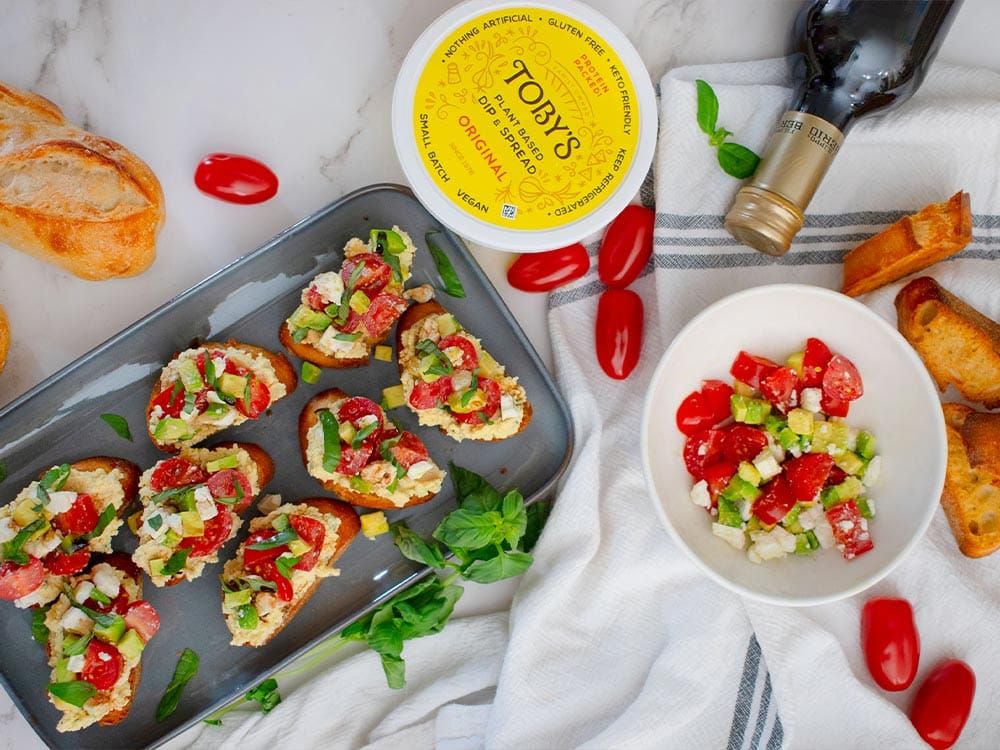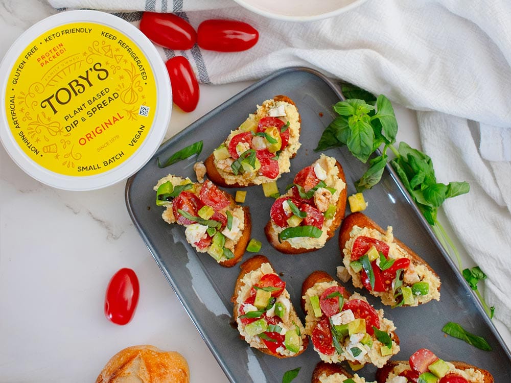 Avocado & Tomato Bruschetta with Toby’s Dip & Spread