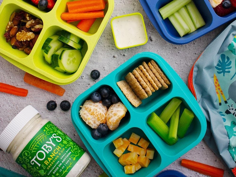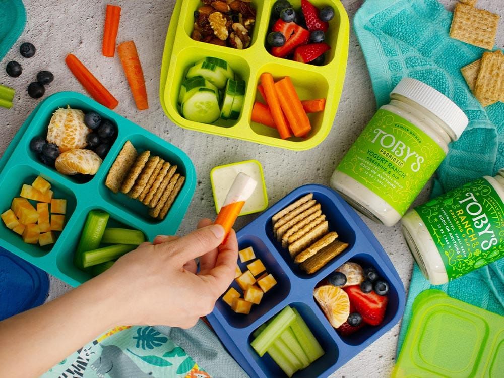 Pack with a sealed ramekin or use one of the compartments for Toby’s Dip & Spread and/or Toby’s Dressing & Dip. Serve and enjoy your Back to School Bentos!
