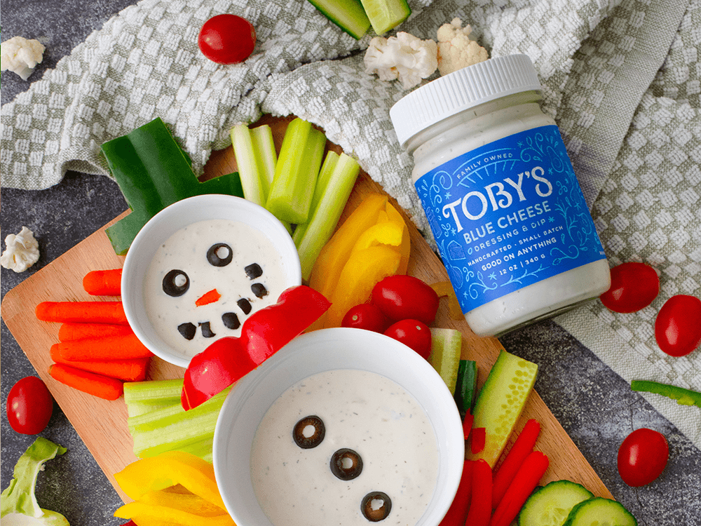 Festive Snowman Snack Plate with Toby’s Blue Cheese & Ranch