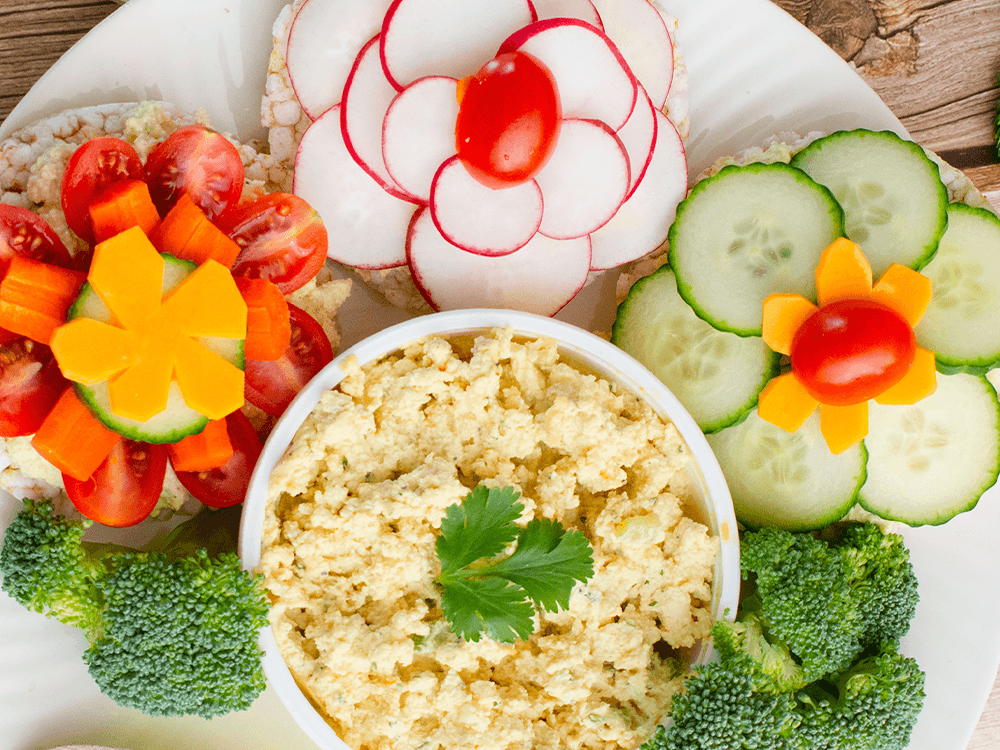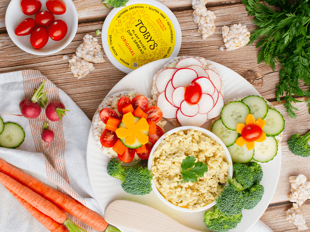 Rice Cake Veggie Flowers with Toby’s Original Dip