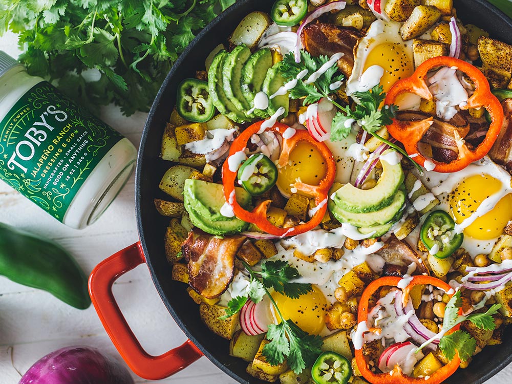 Serve drizzled with Toby’s Jalapeño Ranch Dressing and Dip. Enjoy!